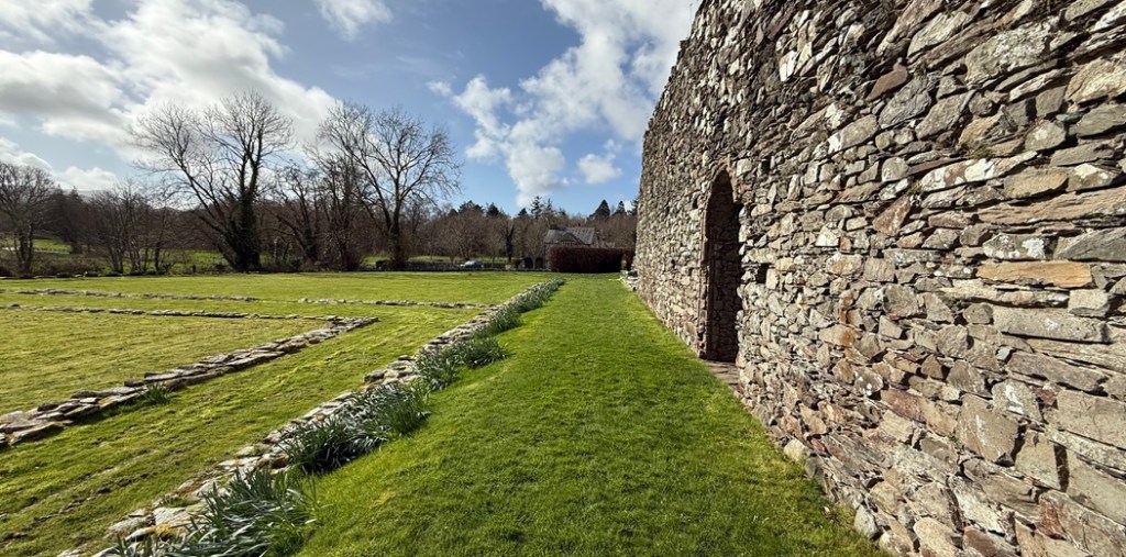 Hidden away down a narrow country lane, we pulled into a small car park and immediately found the abbey ruins lying quietly in the field beside us. Last year we visited Rievaulx Abbey in the Yorkshire Dales, a vast, soaring structure with a serene, almost monastic stillness, and although this abbey was far smaller, it carried a similar sense of peace. It was free and open to explore through a simple wooden gate, offering long views across what remains of the interior, all set within an impossibly tranquil landscape. A couple of twisty staircases invite you to climb them, though they lead nowhere now, leaving you – as so many ruins do – to imagine what once stood here a thousand years ago. It’s a quiet testament to the Cistercian influence in Wales, a place left to crumble yet still substantial enough to stir the imagination.